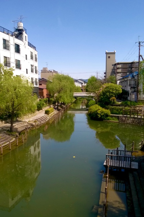 Our accomodation was located in Fushima, in the Southern part of Kyoto. It could be reached by subway and train as well. Given that our Japan Rail Pass is valid for the railway, we used the latter. We crossed shopping streets spotted with all kinds of neat little stores (groceries, liquor stores, ceramics, stationaries, and so on). Our building was on the bank of small river, in front of Teradaya Inn (which has some historical significance).