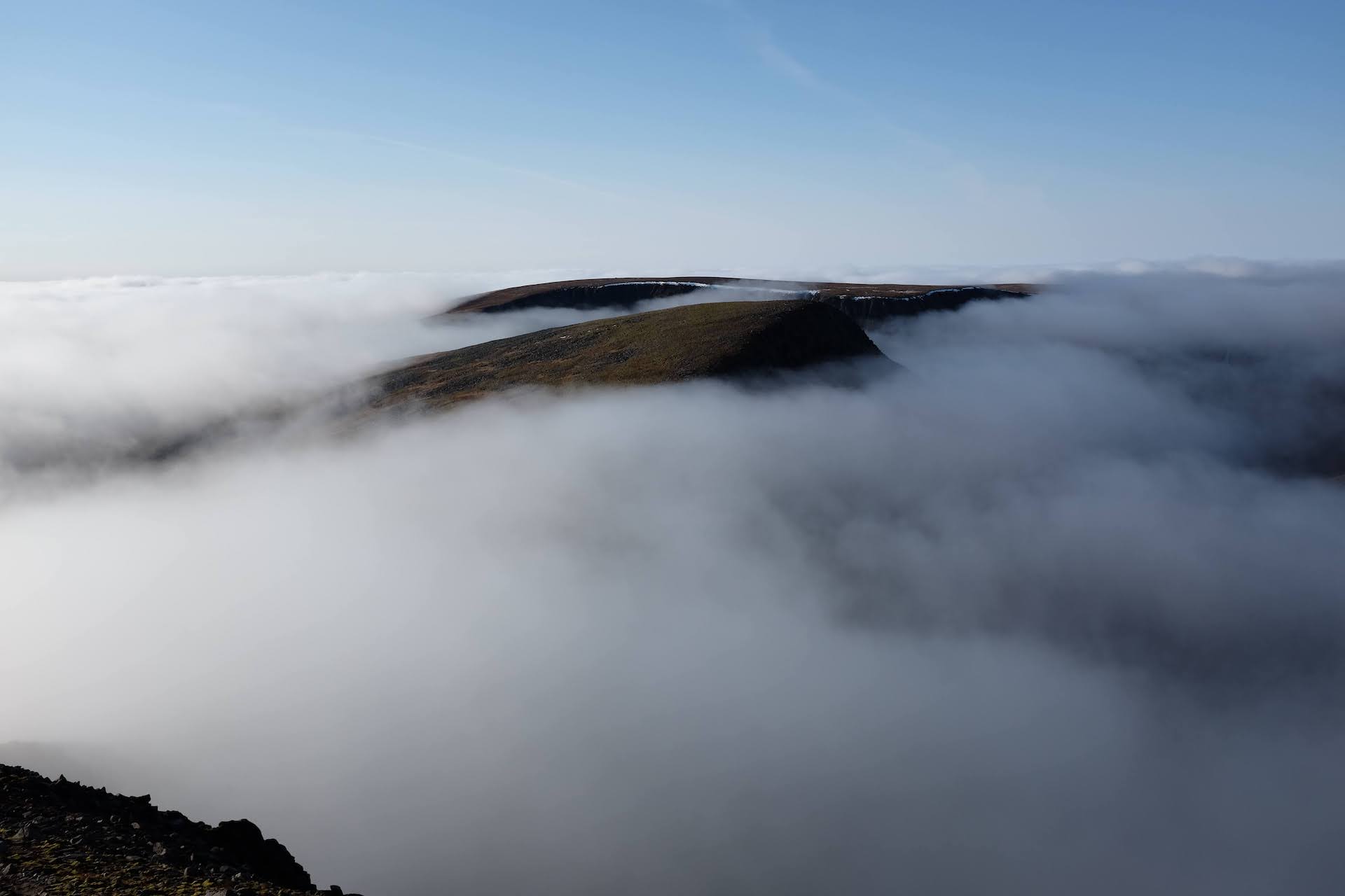 We summited Braeriach (1296m), Cairn Toul (1291m) and Sgor an Lochain Uaine (1258m) — the third, fourth and fifth highest points in the UK, respectively.